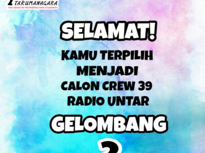 Hai Sobat Muda! Ini dia pengumuman terakhir untuk kamu yang mendaftar di PPCB (Program Perekrutan Crew Baru) Radio Untar 2017, semoga nama kamu ada dibawah... Read More